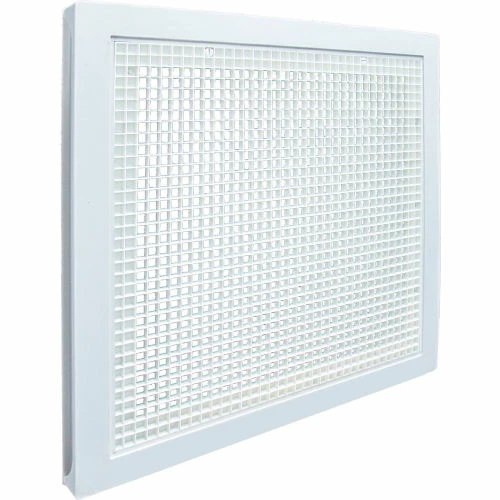 The all plastic Square Duct Ready Stratus eggcrate return filter grille solves many problems associated with metal grilles. It will never rust, scratches don’t show, it will never need repainting, and is indistinguishavle from metal when installed. The hinged grille face drops down to quickly change the fiter or to remove for cleaning. It has a consistent smooth finish, resists sweating, anti-static, and is mildew resistant. Fits 20″ x 20″ square duct. White, also comes in black.