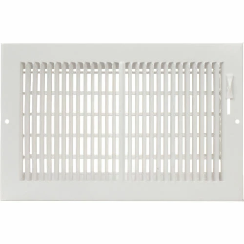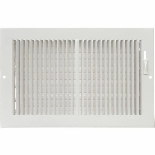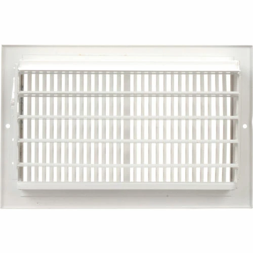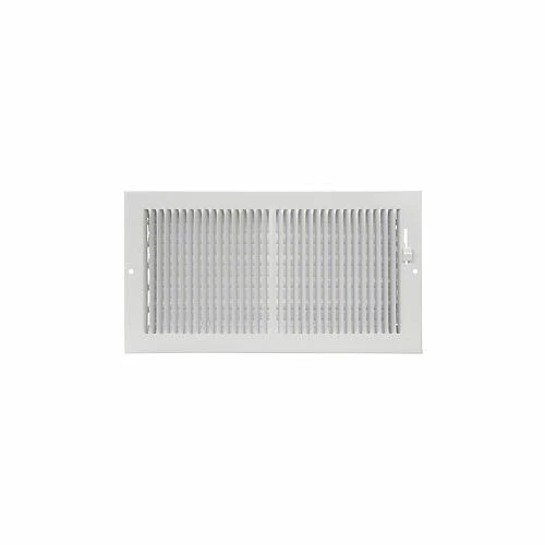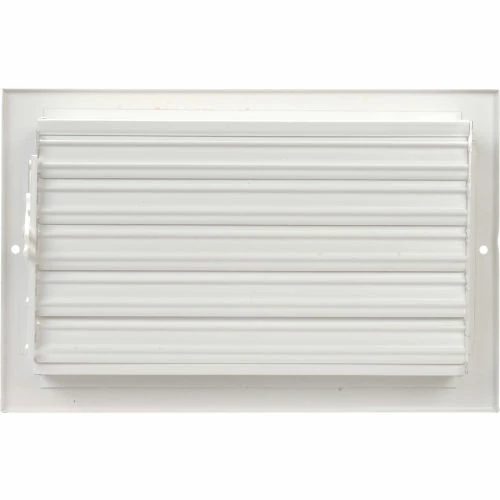 Varied dispersion for cooling or heating. Adjustable multi-louver damper. Three bars to the inch. Gasket equipped. All steel construction. White finish.
