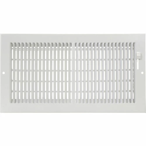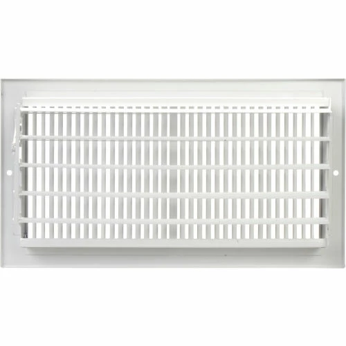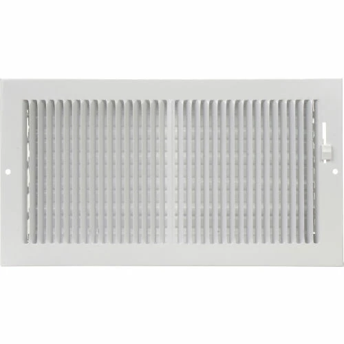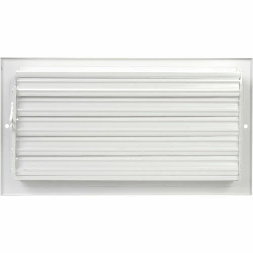 Varied dispersion for cooling or heating. Adjustable multi-louver damper. Three bars to the inch. Gasket equipped. All steel construction. White finish.