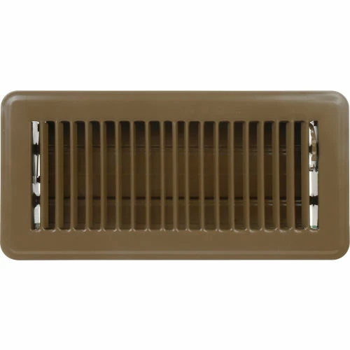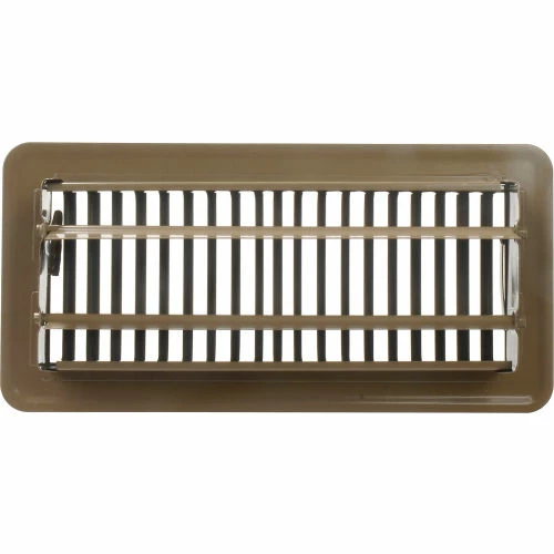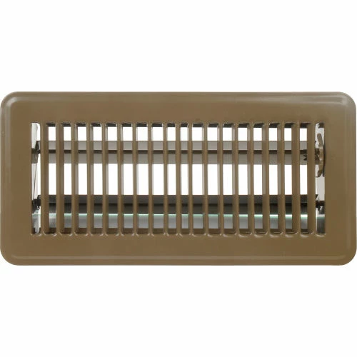 Wide border compensates for oversize floor openings. Strong rolled edge face bars set at graduated angles for wide diffusion. Parallel valves deflect air to wall or into room.