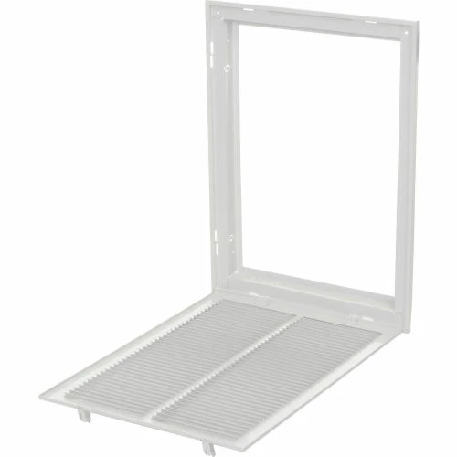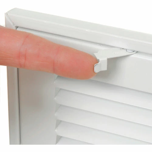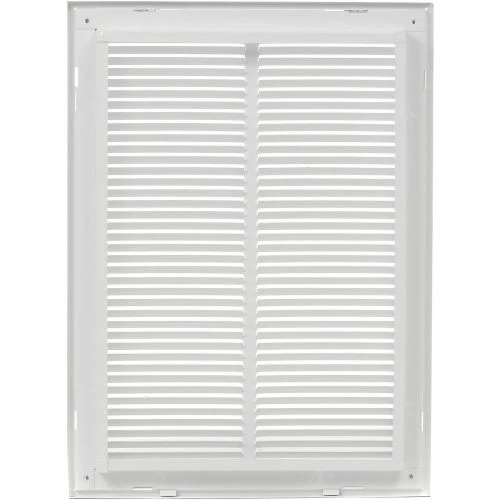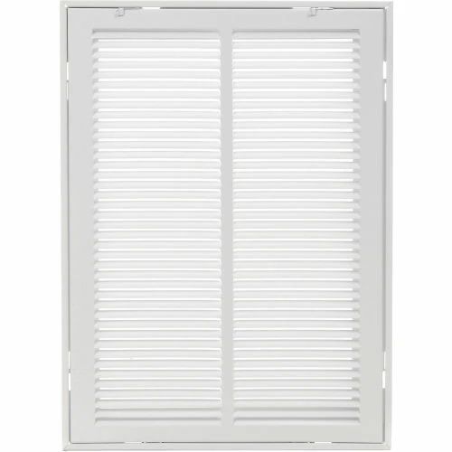 Wider border for easy installation. Face hinged for easy opening. Large face area, approx. 72%. 1/2″ Face bar spacing. Uses standard filter (not included)