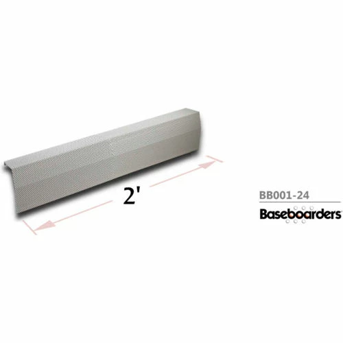 The easy slip-on baseboard heater cover that instantly rejuvenates ugly old, yet perfectly functional baseboard heaters. Baseboarders® are the only one-size fits-most perforated steel baseboard heater covers that just slip over your existing baseboard heaters. The one-piece design uses heavy-duty 22 gauge (0.033 in. thick) galvanized steel that stands up to years of physical and chemical abuse. Baseboarders® are considered child safe for their complete lack of exposed sharp edges while blocking access to the heating element from the top. Baseboarders® can also be installed in new construction environments or when the original covers have been completely removed and all that remains is the bare finned tube heating element. Slips over the original baseboard heater – just remove the existing front panel and end caps. Baseboarders® Premium available in 2′, 3′, 4′, 5′, 6′ and 7′ lengths. Accessories such as end caps and inside corners are sold separately. The original purchaser is protected with our lifetime warranty against the development of rust.
