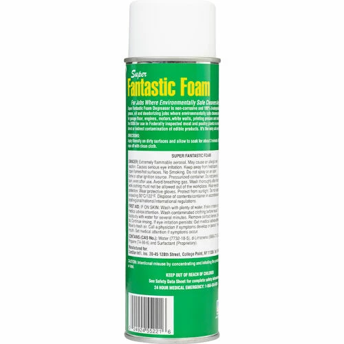 - Super Fantastic Foam Degreaser is non-corrosive and 100% biodegradable. Cleans away greasy grime, oils and carbon deposits as it deodorizes. Use where environmentally safe cleaners are DEMANDED. Good to clean garage floors, engines, tire rims, mechanical parts and any hard surface. Stable foam, water rinse formula with the pleasant scent of lemon.