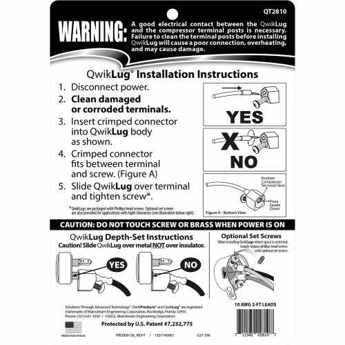 Patented product, QwikLug®, easily attaches to damaged or corroded spade connectors. QwikLug™ comes with color-coded leads to connect to existing wiring. The outer connector housing is a nylon insulator, eliminating the potential for shorting. It’s that easy!